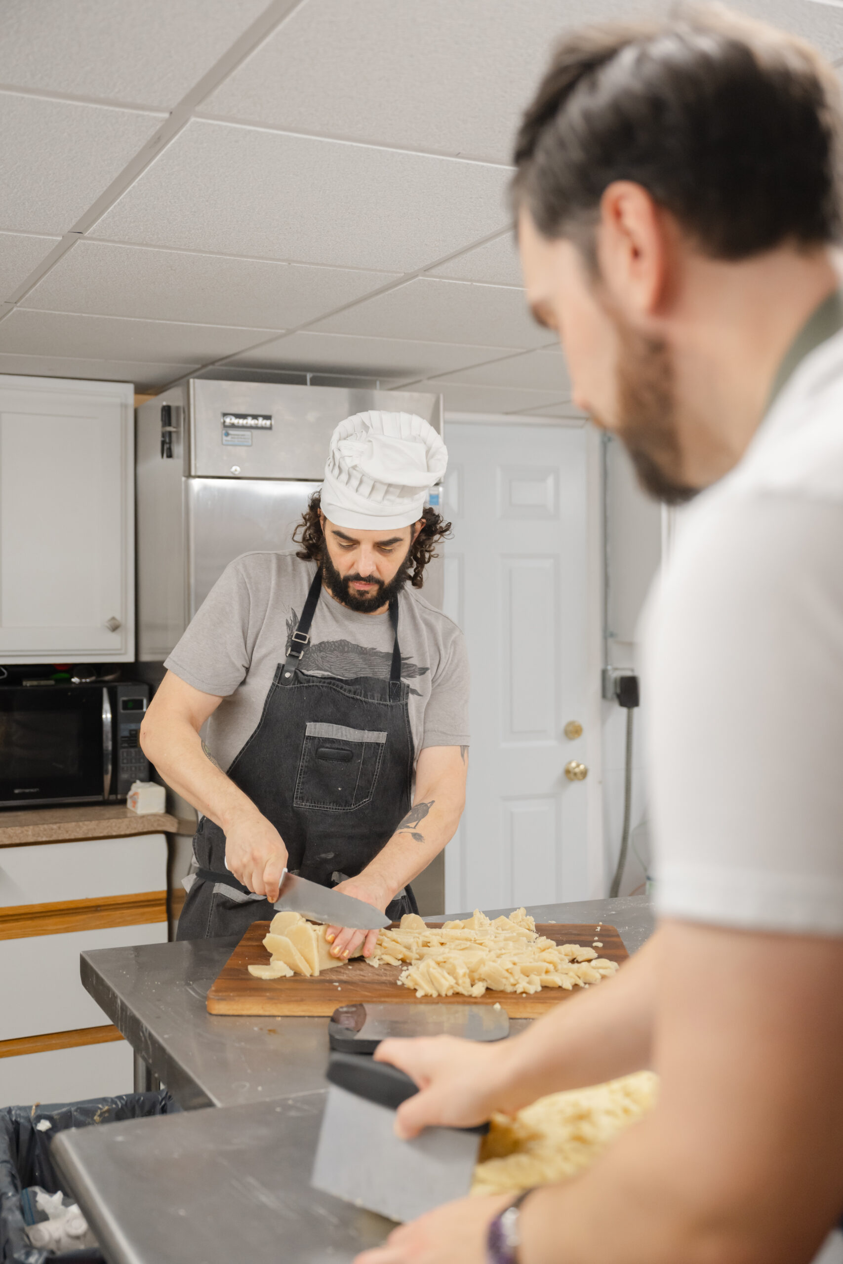 He had closed his florist shop before the COVID Pandemic, but like as for everyone, the pandemic changed a lot. “I spent the whole summer outside planting food in the yard, landscaping. As soon as it became clear that the pandemic was gonna’ keep going, I was like, okay, comfort food. I was baking and baking and baking,” Palmieri said, describing ordering 25-pound bags of yeast wholesale. “At that point I was in a relationship with a man and a woman, and the three of us only eat so much, so I was leaving food on my kids’ porches, on my sister’s porches.”